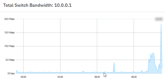 FrameFlow has a section for dashboards that you can create to represent different aspects of your monitoring config. You can display SNMP bandwidth data on a monitor to get round-the-clock updates on the status of your most critical networking gear or view the graphs directly from the monitor that watches over the device. By changing the date ranges, you can view specific periods of time, like the last hour or last day, or zoom out to see the bigger picture of values for that week or month. Below is a 12-hour total bandwidth graph as an example.
